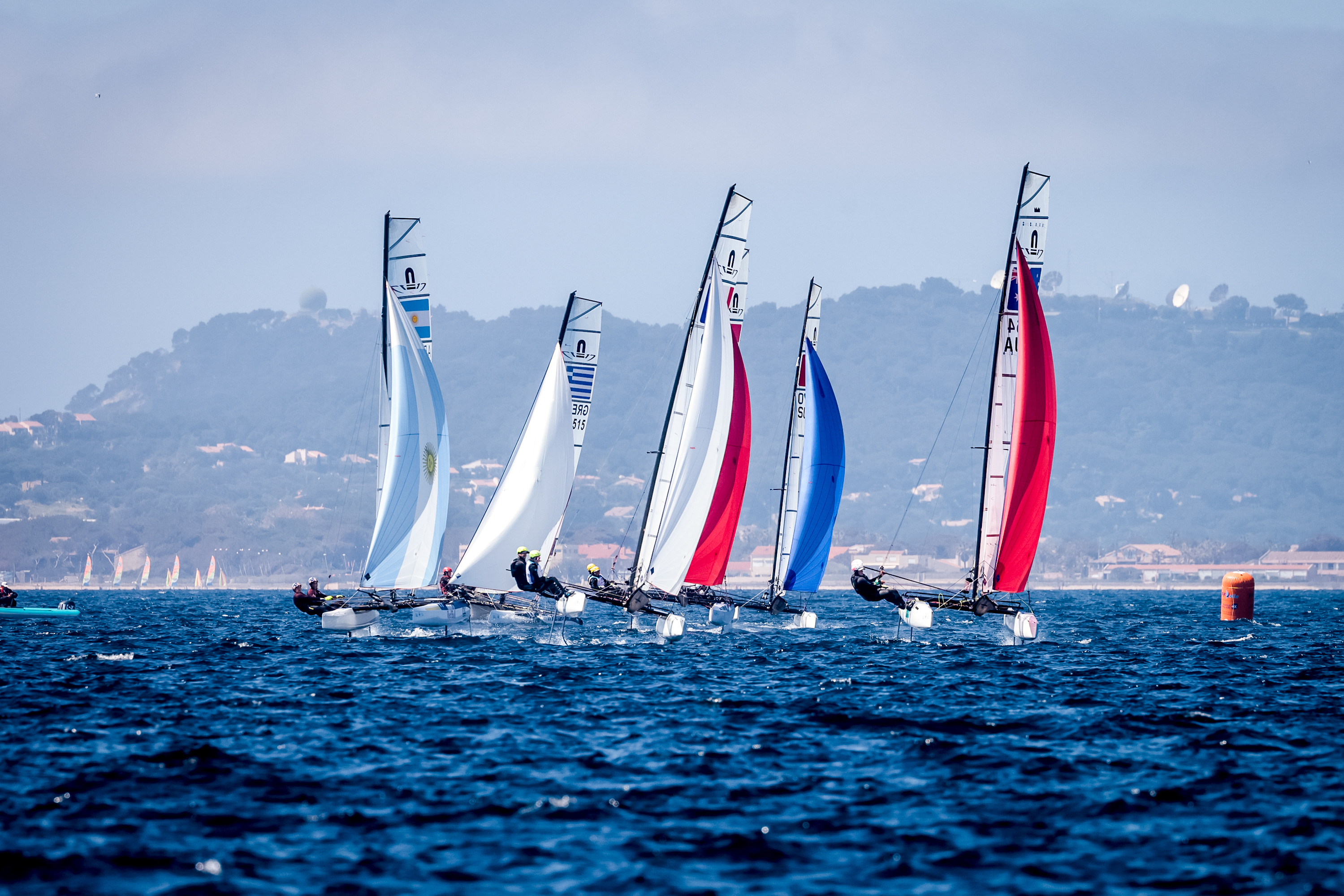 Très belle journée de courses pour ce quatrième jour de la 53ème Semaine Olympique Française de Hyères - TPM. Les conditions étaient optimales sur le plan d’eau hyérois avec un vent d’est d’une quinzaine de nœuds. Côté course, à deux jours des grandes finales, la pression monte pour gagner sa place en finales (Medal Race) qui se dérouleront samedi. Seuls les 10 premiers des 470, ILCA 6 & 7, Nacra 17, 49er et 49er FX et les 14 premiers des Kitefoil et iQFOiL seront qualifiés pour y participer.