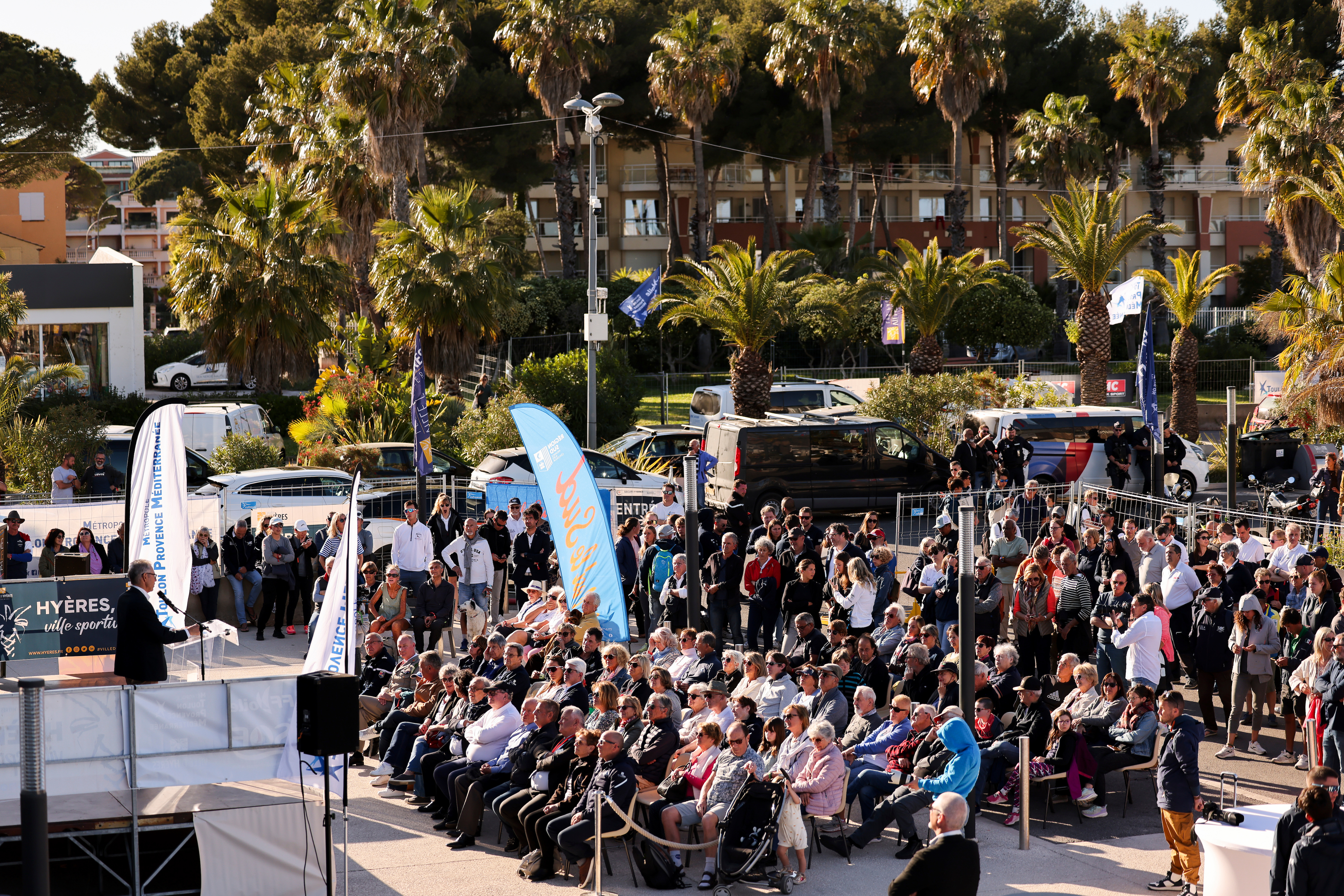 The opening ceremony will take place in the event village in the presence of Ed Russo, Treasurer of the French sailing federation (FFV), Francis Roux, Deputy Director of sport for the city of Hyères, Vice-President of the Toulon Provence Méditerranée area and Vice-President of the Var region, Arnaud Latil, Mayor of Carqueiranne and Vice-President of the Toulon Provence Méditerranée area, François de Canson, Vice-President in charge of economic development, attractions, tourism, and major risk prevention; Lieutenant Fabien Schaeffer, Commanding Officer of the 54th Artillery Regiment; and Laurent Labeaune, President of Var region’s Olympic and Sports committee.